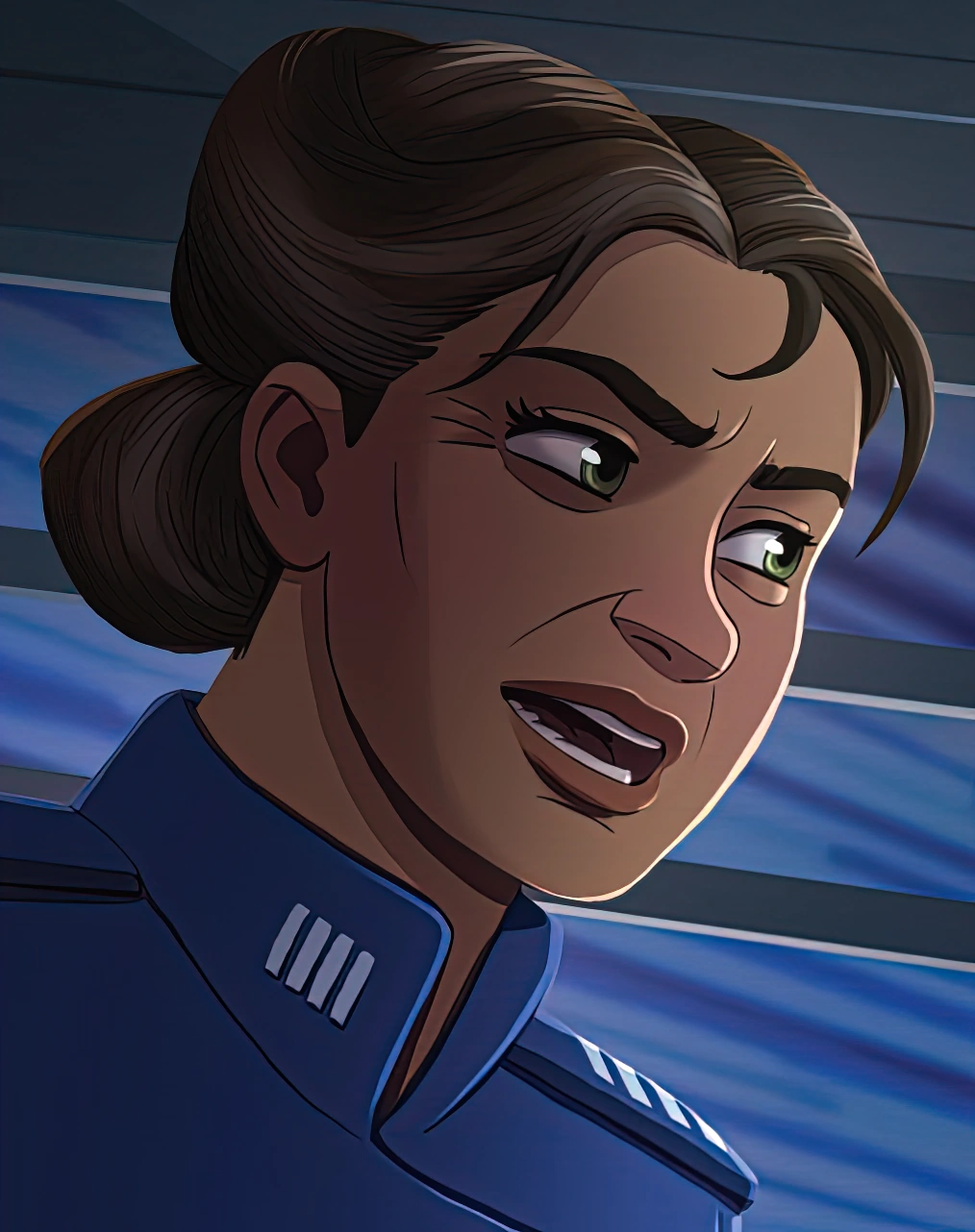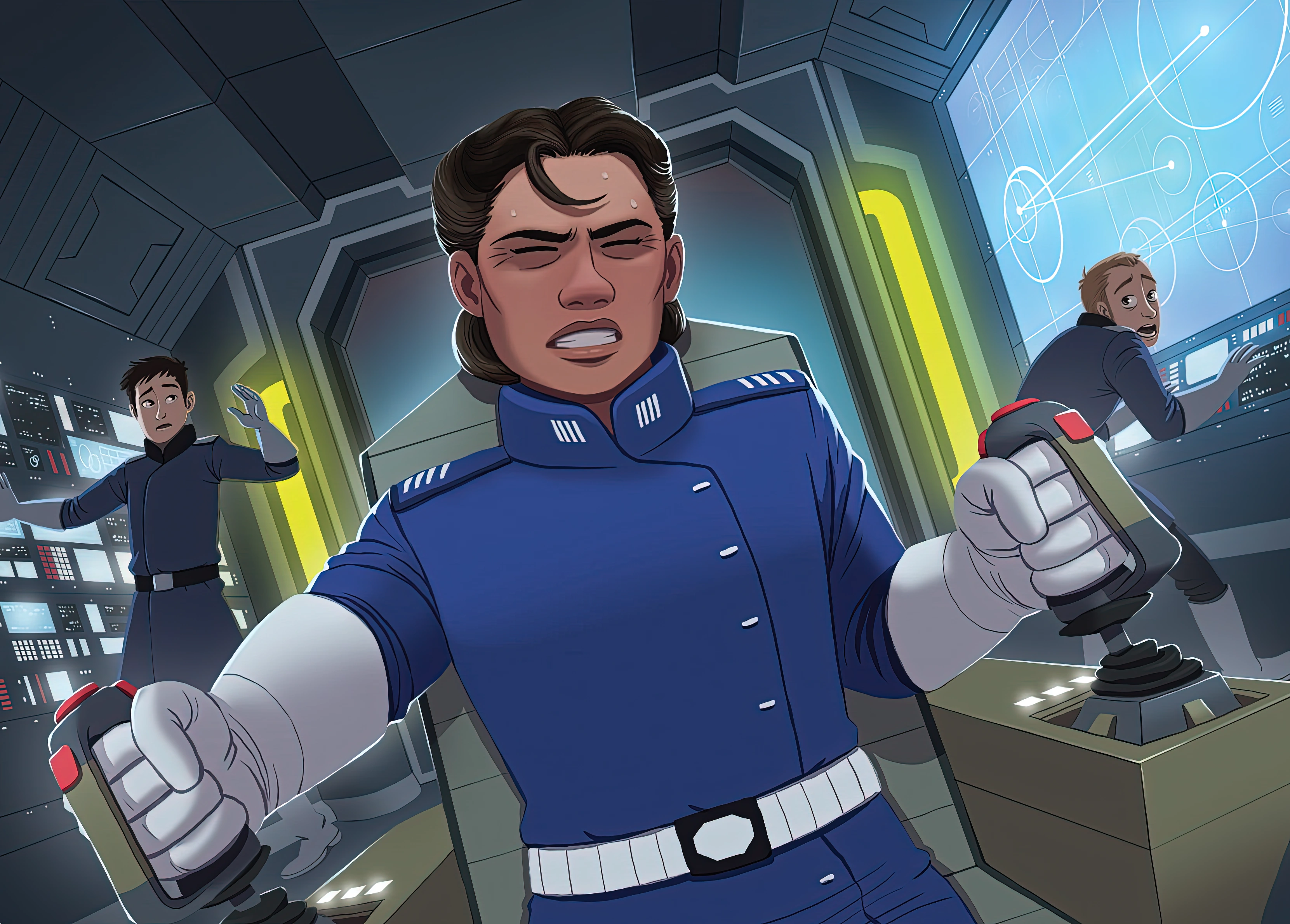 Hedda Casset aux commandes du Legacy Run lors de sa manœuvre d'évitement en hyperespace.