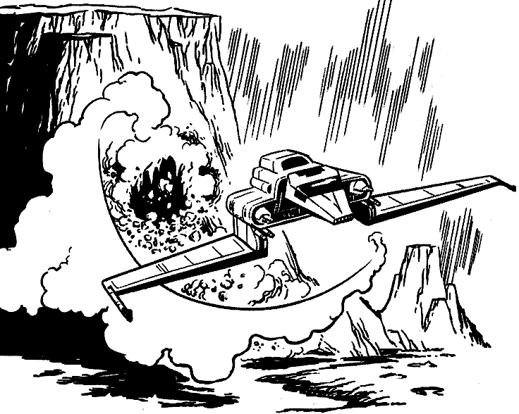 Après avoir dégagé CR-8R qui était prisonnier de décombres, les deux enfants grimpèrent à bord de la navette. Ayant peu de temps avant que la minuterie des explosifs n'arrive au terme de son décompte, Lina décida de piloter la navette à travers le réseau de tunnels jusqu'à une autre sortie. Milo entreprit d'aider sa sœur en se servant du laser de forage pour agrandir le tunnel de sortie. In extremis, les deux enfants parvinrent à sortir de la caverne et à rejoindre l'espace. Là, ils virent avec impuissance la navette de classe Sentinelle à bord de laquelle se trouvaient leurs parents plonger dans l'hyperespace. Bien déterminés à sauver ses parents, Lina décida qu'ils devaient se rendre sur la planète Thune.[2]