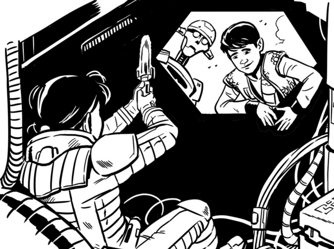 L'Oiseau-murmure parvint tout juste à effectuer le saut en hyperespace. Lors de son retour dans l'espace normal, le générateur d'énergie eut de plus en plus de difficultés pour alimenter correctement les moteurs et les principaux systèmes. Les contrôles tombant un à un, Milo accompagna sa sœur pour procéder à quelques réparations dans le compartiment des machines. Après avoir constaté que la trappe d'accès était bloquée, Lina décida d'utiliser l'accès extérieur. Depuis le poste de pilotage, Milo aida Crater à garder le contrôle sur la navette pendant que sa sœur Lina rejoignait le compartiment.[3]
