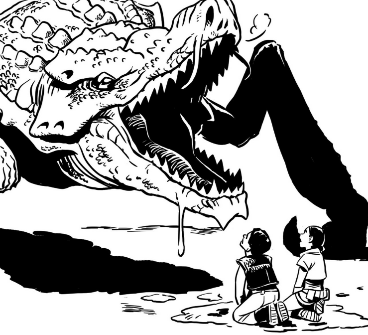 Milo et Lina face à la créature.