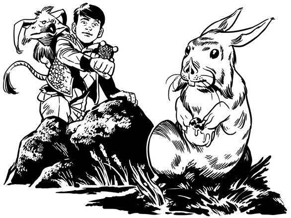 Milo tente de capturer un lapin-de-cendre.
