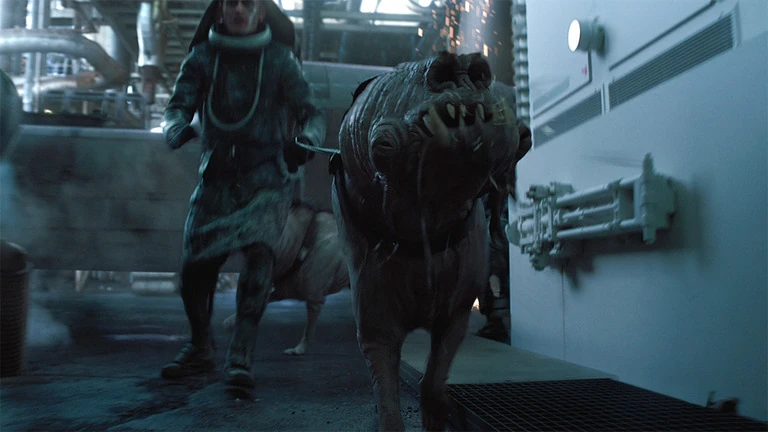 Rebolt se lance à la poursuite de Han et Qi'ra avec ses Molosses.