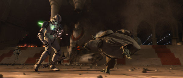 À l'origine, Kenobi et Yoda étaient attendus par une escouade de soldats clones déguisés en Jedi devant le Temple. Cette scène fut finalement coupée et ils gardèrent les soldats clones en armure bleue de la 501e Légion.