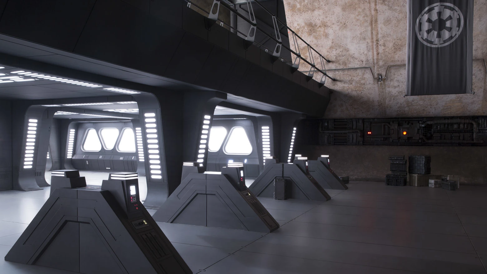 Les terminaux d'embarquement étaient remplis de points d'enregistrement qui permettaient de ralentir le flot des voyageurs et ainsi d'augmenter le nombre de vérifications de sécurité et d'interrogatoires. Des postes surélevés où officiaient des soldats de la Marine avaient également été installé tandis qu'un poste de recrutement Impérial se trouvait également dans le spatioport. Pour circuler, les voyageurs devaient présenter leur plaque de données de voyage, noire pour les entrées, blanche pour les sorties.[2]