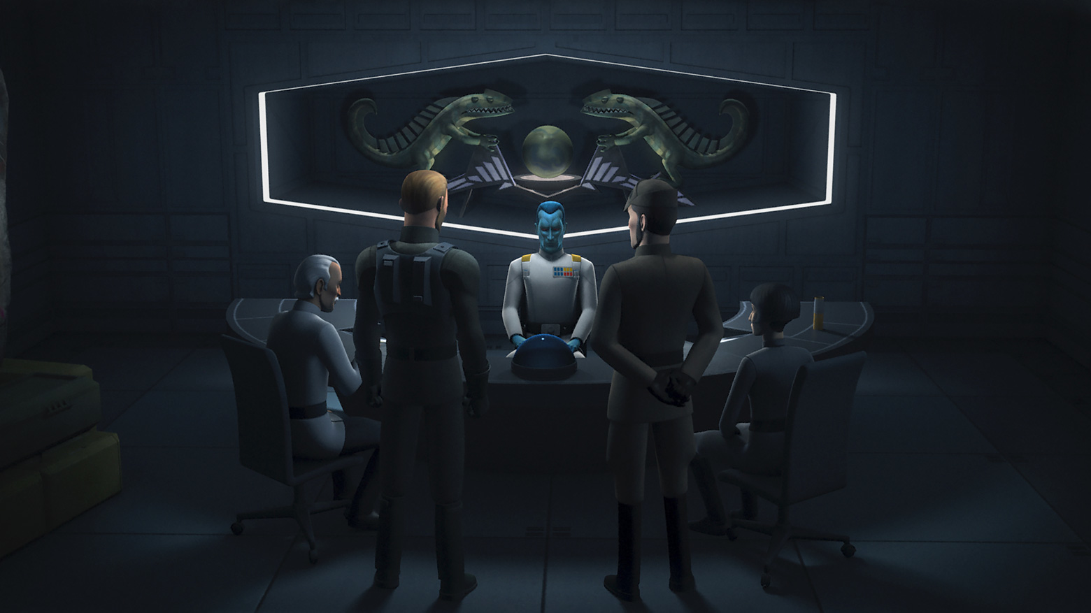 Yularen leur demanda d'être vigilant et de surveiller attentivement toutes leurs connaissances au sein de l'Empire. Thrawn insista que les recherches devraient être effectuées le plus discrètement possible car il était sur le point de découvrir l'emplacement de la base rebelle dans le secteur. Quand Konstantine demanda comment il avait fait, Thrawn répondit qu'il s'était basé sur les récentes attaques des Rebelles dans les parages et avait ainsi calculé les endroits éventuels de la base en se référant aux lieux des attaques et de leur proximité à Lothal.