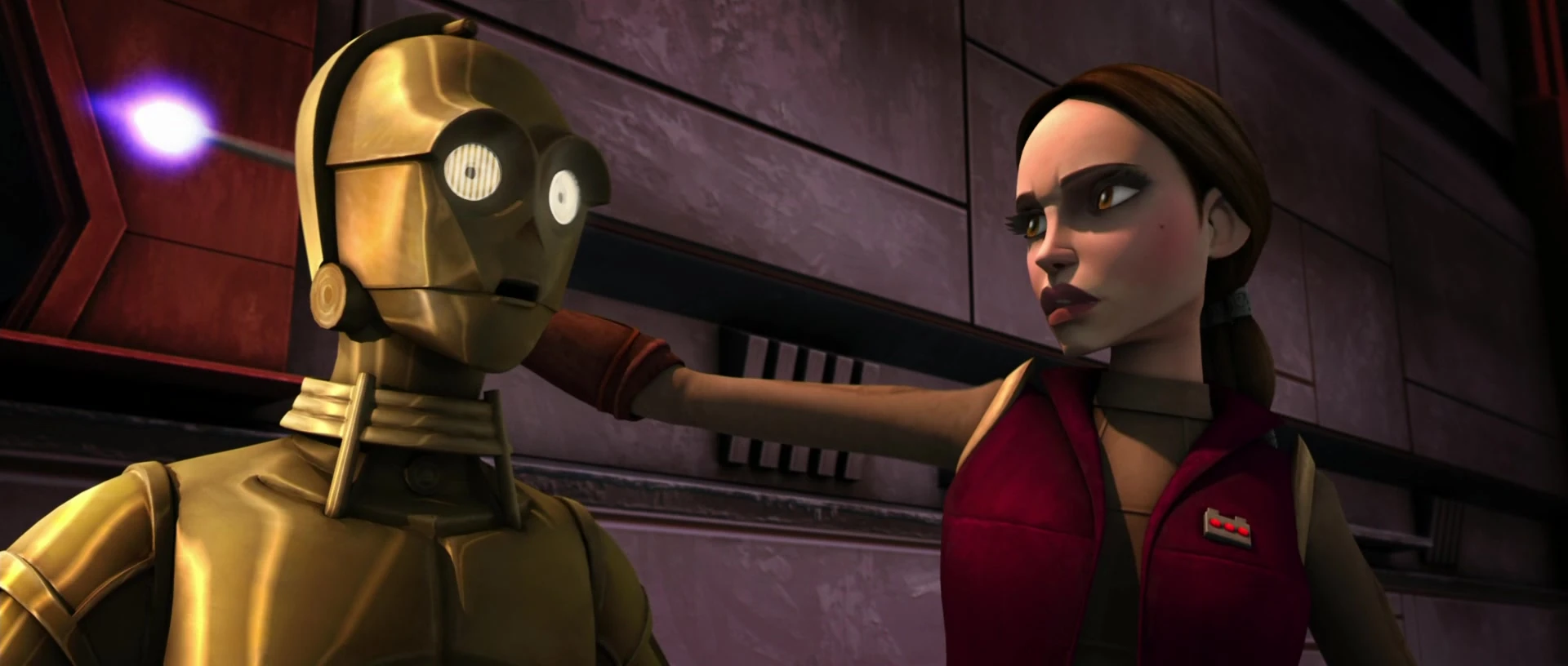 Miközben Qui-Gon felkereste Wattót, hogy intézkedjen a hiperhajtómű és Anakin felszabadítása ügyében, Padmé ölelésekkel és csókokkal árasztotta el a fiút.