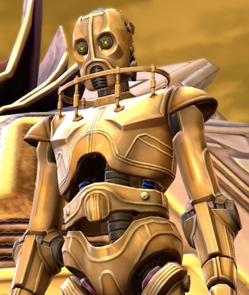 L'Araldo di Karagga l'Inflessibile era un Droide Protocollare di genere maschile al servizio di Karagga.Il Signore del Crimine infatti non parlava direttamente con nessuno,e faceva parlare al suo posto questo droide programmato.