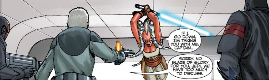 Sivill lasciò il centro di detenzione dopo aver torturato Dar'Nala. Con il capitano lontano, il maestro Jedi venne avvicinato da Braden, un cacciatore di taglie anche lui prigioniero a bordo dell'incrociatore. Dalla sua cella Braden commentò di non avere mai visto nessuno sopravvivere a tante scariche elettriche e chiese a Dar'Nala perché non avesse risposto alle domande di Sivill. La togruta disse di non aver risposto perché conosceva la verità dietro l'attacco, ma Braden la contraddisse dicendo che la verità avrebbe fatto poco se Sivill l'avesse uccisa. Come risposta Dar'Nala usò la forza per disattivare il campo che teneva prigioniero il cacciatore di taglie e lo reclutò per fargli da messaggero. Braden domandò perché non avesse liberato se stessa ma Dar'Nala gli rispose che era troppo debole dopo la tortura subita e lei non sarebbe mai stata in grado di lasciare la nave viva. Il cacciatore di taglie accettò di portare il suo messaggio a Shan e al Maestro Zym. Il messaggio consisteva nel racconto (inventato) di come Dar'Nala fosse riuscita a capire dai pensieri di Sivill che l'attacco all'Envoy fosse stato ordinato da Lord Baras.