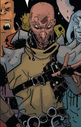 Ma Marchion Ro fu più veloce; estrasse una vibrostella che teneva nel polsino, e mozzò via la mano destra di Kassav, insieme al blaster. Lo Weequay perdeva sangue dal volto e da ciò che rimaneva del polso.