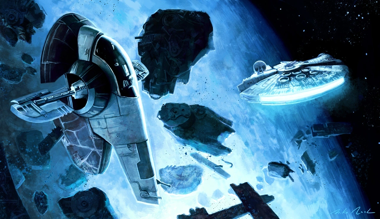 3 ABYに発生したホスの戦いの後、反乱同盟のメンバーであるハン・ソロとチューバッカ、レイア・オーガナらを乗せたYT-1300軽貨物船<ミレニアム・ファルコン>は銀河帝国の追跡をかわすためホス小惑星帯へ逃げ込んだ。ソロは<ファルコン>をインペリアル級スター・デストロイヤー<アヴェンジャー>にぴったりと張り付かせることで、帝国のセンサーから姿を消すことに成功した。ソロは<アヴェンジャー>がアノート星系で投棄したゴミに紛れて離脱したが、賞金稼ぎボバ・フェットの<スレーヴI>に追跡されていることに気づかなかった。その後、現在位置を確認したソロは、知り合いのランド・カルリジアンがいる近隣の惑星ベスピンに針路を取った。[7]