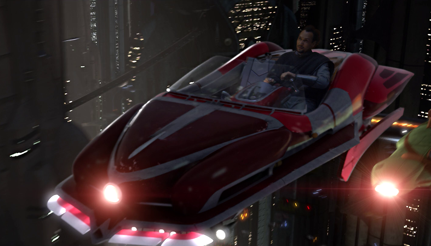 コルサントのような都市惑星では、エアスピーダーは自動誘導システムで制御されたスカイレーンを通行することを義務付けられていた。超高層ビル群の谷間を抜けながら空中を走るスカイレーンは、コルサントにおける主要交通手段であり、空が大混乱に陥ることのないよう、厳しく交通規制されていた。しかしコルサントの名物であるエア・タクシーのドライバーたちは、厳しいテストに合格することで自らの運転技術を証明し、スカイレーンから外れて近道を飛べる無制限の“フリー・トラベル”権を与えられていた。[6]