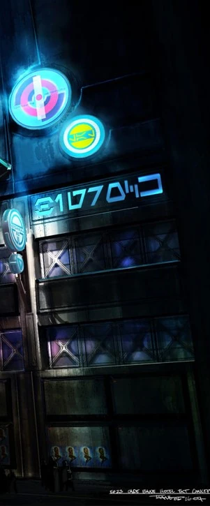 コンセプト・アートの段階で、ザ・ホールはビッグロック(Bigrock)という名前だった。また、コンセプト・アートでは看板の上の丸いネオンサインにオーラベッシュで「lal」と書かれているのが確認できる。