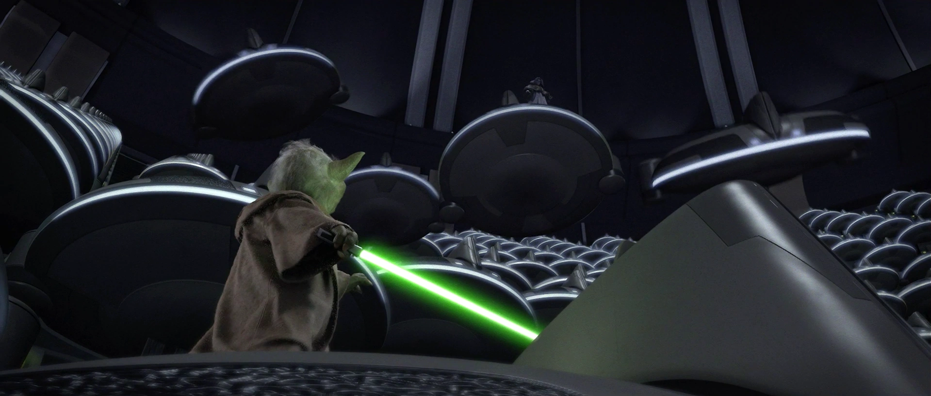 19 BBY、シスの暗黒卿ダース・シディアスは銀河元老院でジェダイ・マスターのヨーダと対決を繰り広げた際、フォースを使って複数のリパルサーポッドを持ち上げ、ヨーダに向かって飛ばした。ヨーダは複数のポッドをかわした後、ポッドのひとつをフォースで受け止め、シディアスに向かって投げ返した。[3]