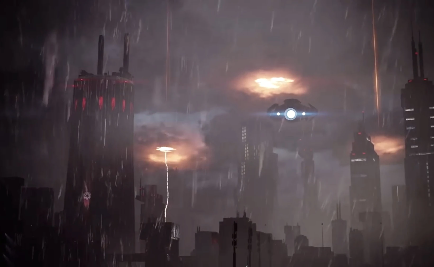 4 ABY、エンドアの戦いの直後、銀河帝国が惑星ヴァードスでシンダー作戦を実行していた時、グレブ護民官を回収するため地上に派遣されていたインフェルノ分隊のコマンダー・アイデン・ヴェルシオとエージェント・デル・ミーコが帝国から離反し、首都のケストロで戦闘が発生した。2人はレイダー級コルベット<コルウス>でヴァードスから脱出し、帝国に残留したインフェルノ分隊メンバーのギデオン・ハスクが代わりにグレブを回収した。