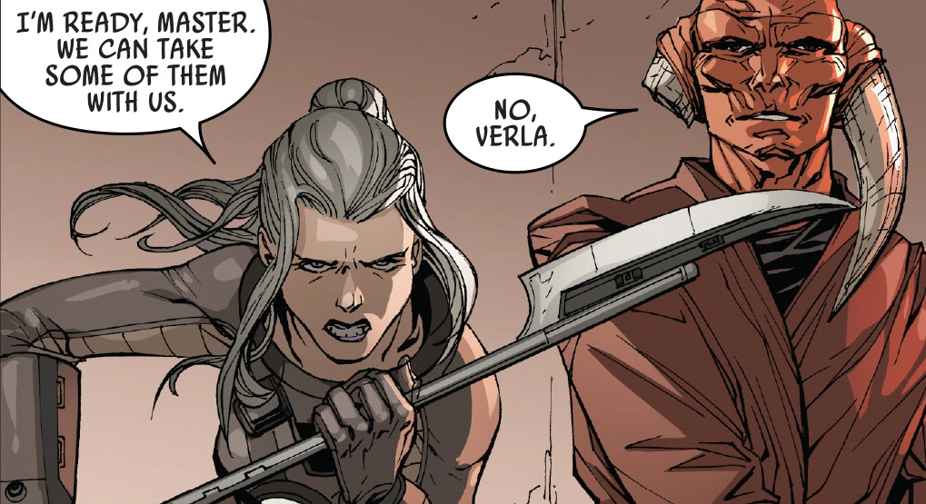 しかし彼らは行き止まりに突き当たって逃げ道を失い、尋問官シックス・ブラザー、ナインス・シスター、テンス・ブラザー、そしてパージ・トルーパー分隊に追い詰められてしまう。ダレンがシックス・ブラザーのライトセーバーで斬殺されると、ヴァーラは覚悟を決めて武器を構えた。しかしバーはライトセーバーを床に投げ、尋問官たちがジェダイだった頃の名前を呼んだ。そして彼は元クローン・トルーパーによって構成されるパージ・トルーパーたちに向かってマインド・トリックを使い、オーダー66を執行するよう命じた。バーの思惑通り、パージ・トルーパーは元ジェダイの尋問官に向かって一斉射撃を開始した。[1]