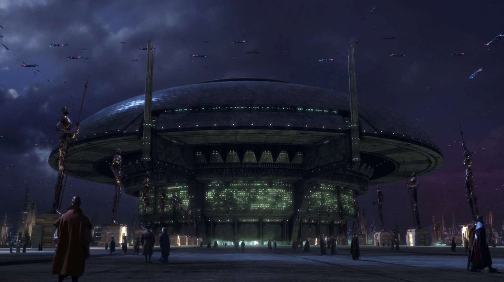 元老院ビルは、共和国創立初期に使われていた議会場に代わるものとして建てられた。かつての小さな議会場はある種の親しみやすさがあったが、元老院ビルは成功裏に勢力を拡大する共和国の姿を反映した壮大な建物だった。[2] 元老院ビルは銀河元老院の会議場としての役割を果たし、何千人という元老院議員がこのビルの会議場に集まり、共和国の諸問題について議論を交わした。[3]