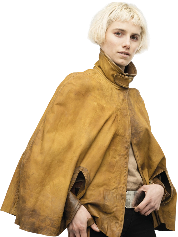 合成皮(Synth-hide)は衣類に用いられる素材である。10 BBY当時、密輸業者のアストリッド・フェンリスは合成皮のケープレットを身に着けていた。[1]