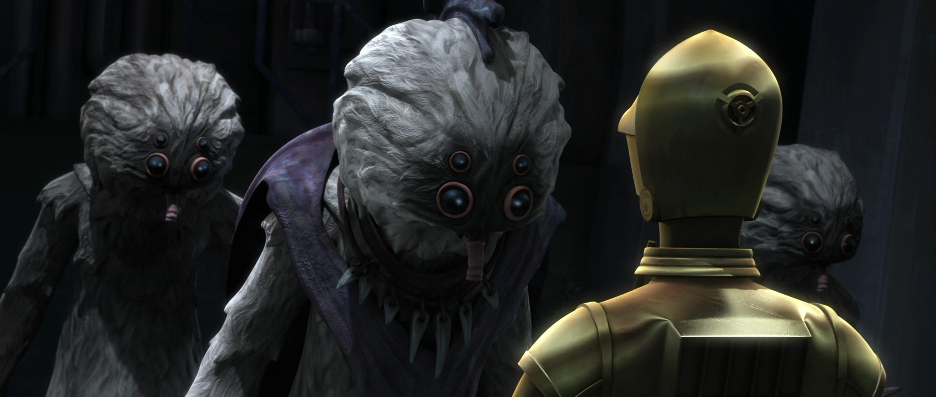惑星の雪原にLAAT/iガンシップを着陸させると、ケノービとスカイウォーカーはグリッド・ステーションの近くでチョー書記長やチューチー議員と顔を合わせ、ともに基地の中へ足を踏み入れた。基地の司令センターの周囲には氷結したクローン・トルーパーたちの死体が散乱しており、チョー書記長は連合軍がこの星へ侵入したに違いないと決めつけた。しかし、床に落ちていたクローンのヘルメットが槍で貫かれていることに気づいたケノービは、書記長の説を否定した。クローン・キャプテンCT-7567(レックス)の報告で、付近に分離主義者の基地があることが明らかになると、ケノービとスカイウォーカーはクローン数名を連れフリーコ・バイクで現地へ赴く。彼らはXTビートル・トランスポート2台を連結させた前哨基地の中へ入り、ここでも共和国基地と同様の襲撃が行われたことを知った。ケノービはB1シリーズ・バトル・ドロイド685が残したホログラム通信記録を発見し、襲撃者の正体がこの星の先住民であることを突き止める。その後、ケノービとスカイウォーカーはタルズの村を訪れてメドチャ・ウォントと出会い、部族を率いるタイ=セン酋長に対面を求めた。タルズは銀河ベーシック標準語を話せなかったが、スカイウォーカーは2種族が握手している絵を描いて友好を求め、パントランの代表者との話し合いに参加してほしいと伝えた。[1]