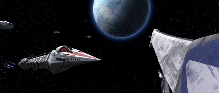 クローン戦争中に完成した試作型ステルス・コルベットは、ジェダイ将軍オビ=ワン・ケノービによってクリストフシスの戦いの戦場へ運ばれた。当時惑星クリストフシスはトレンチ提督率いる独立星系連合艦隊によって封鎖されており、ベイル・オーガナ元老院議員は地上で孤立無援の厳しい戦いを強いられていた。ケノービは新型ステルス・コルベットを利用して地上に救援物資を届けようと考えていたが、操縦を任されたジェダイ・ナイト・アナキン・スカイウォーカーは独断でトレンチ提督に攻撃を仕掛けた。彼はクローン・コマンダー・ブラックアウト率いる特殊作戦部隊クローン・トルーパーのチームやウルフ・ユラーレン提督と共にステルス・コルベットを操作し、トレンチの旗艦である分離主義勢力ドレッドノート<インヴィンシブル>と交戦する。トレンチは追尾魚雷でステルス・コルベットを破壊しようとしたが、スカイウォーカーは魚雷を引きつけながら敵艦へ直進し、ぎりぎりのところで激突を回避する。しかし魚雷はそのままブリッジに直撃し、<インヴィンシブル>を撃破した。その後ステルス・コルベットはクリストフシスのオーガナ議員に救援物資を届けた。