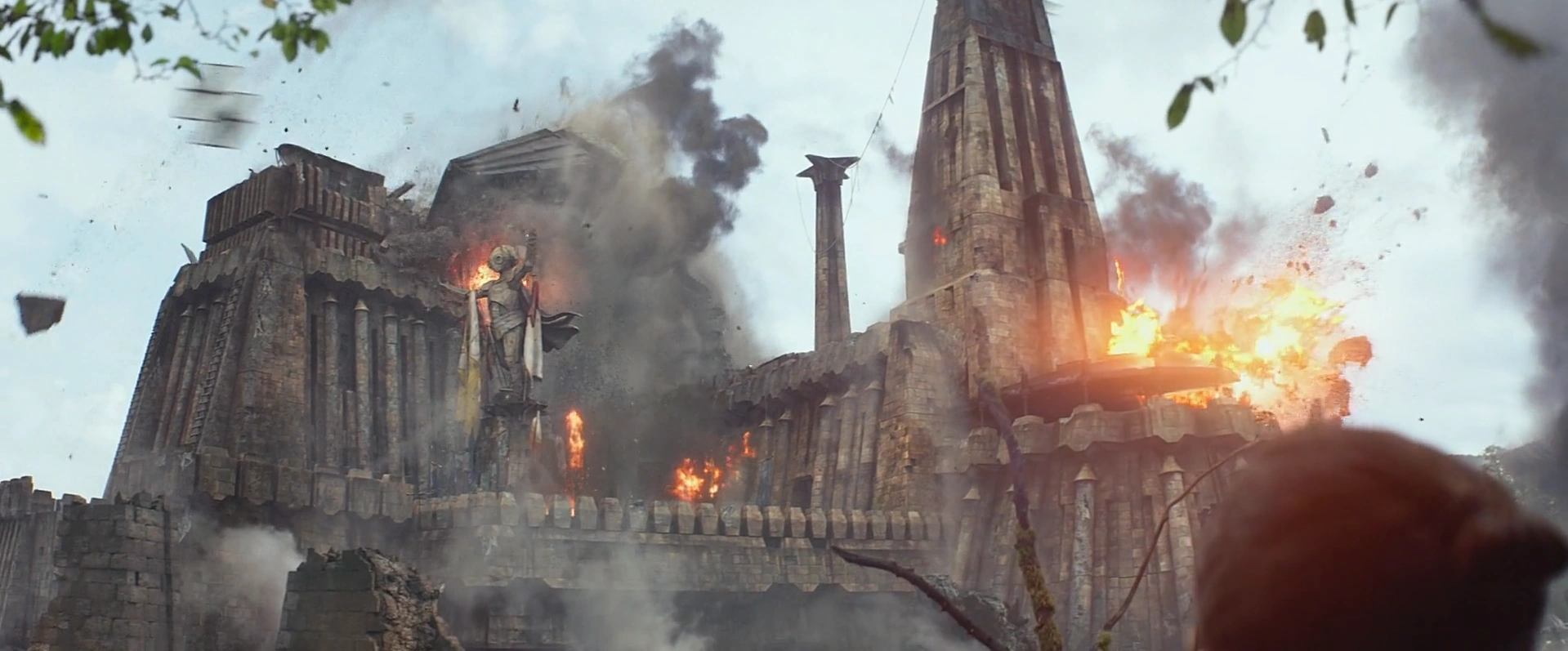 რეის თვალწინ პირველი ორდენი ანადგურებს ტაკოდანას ციხე-დარბაზს.