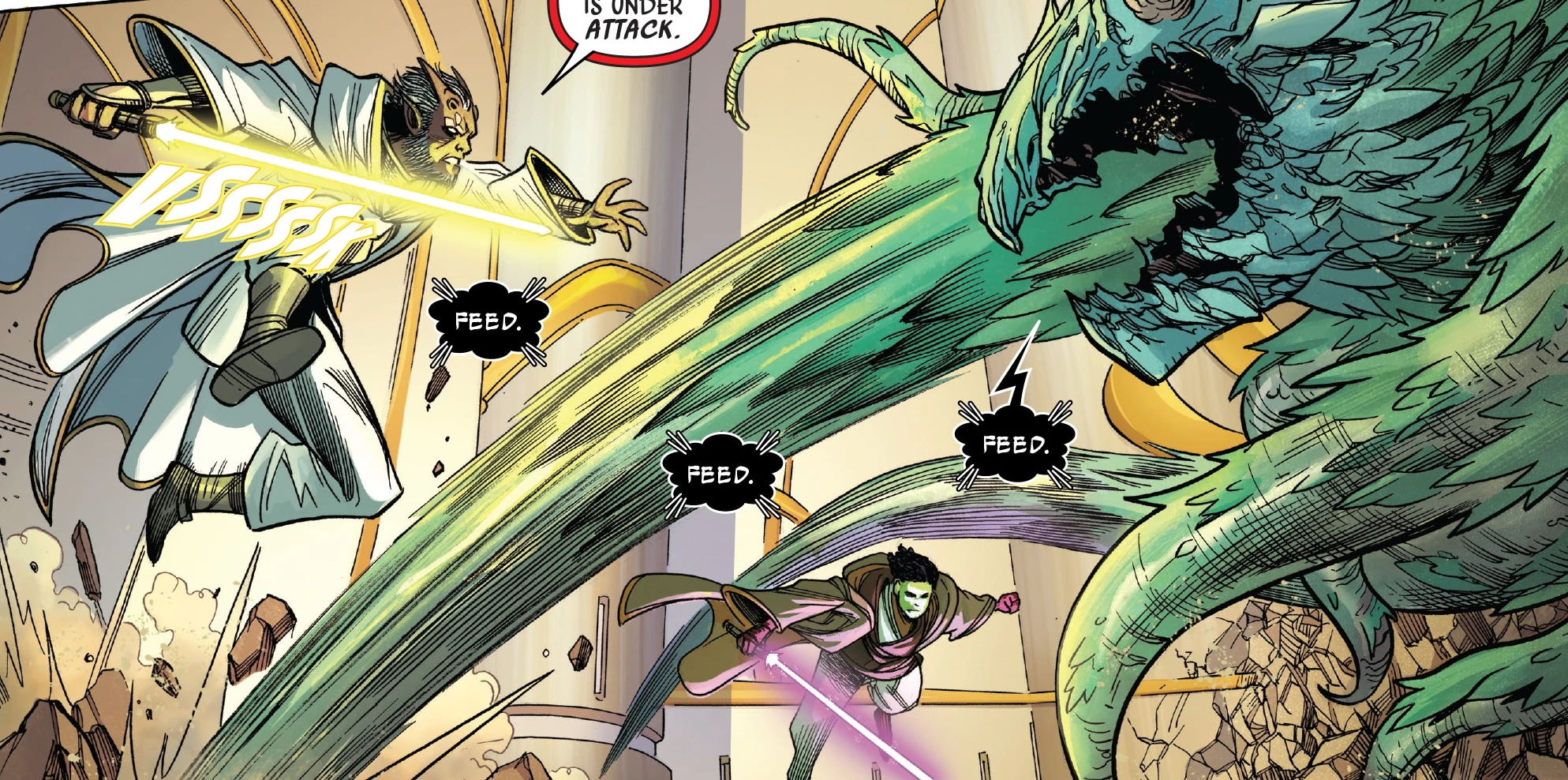 ჰატი, რომელსაც პლანეტა მცირე სედრიდან ვრეტიქსული ქერი გადაჰქონდა,[1] დრენგირებმა მოწამლეს და ჯედაების მიერ გვამიდან, გაკვეთისას, ერთ-ერთი მათგანი ამოძვრა. ოსტატი ჯედაი ესტალა მარუ და რაინდი ჯედაი ვერნესტრა რო ამ დრენგირისგან თავს იცავდნენ. მარუ ამ დროს ცდილობდა მარშალ ევარ კრისთან დაკავშირებას, თუმცა უკანასკნელი დაკავებული იყო მცირე სედრიზე მიმდინარე მოვლენებით.[2]