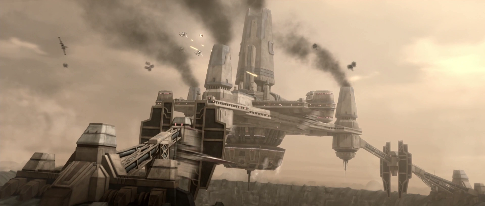 შენობა პირველად გამოჩნდა ტელესერიალ კლონების ომების ეპიზოდში "რესპუბლიკის მონები".[3]