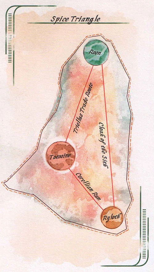 - ვარსკვლავური ომები: კონტრაბანდისტის მეგზური (პირველად ნახსენები როგორც სუნელის სამკუთხედი)