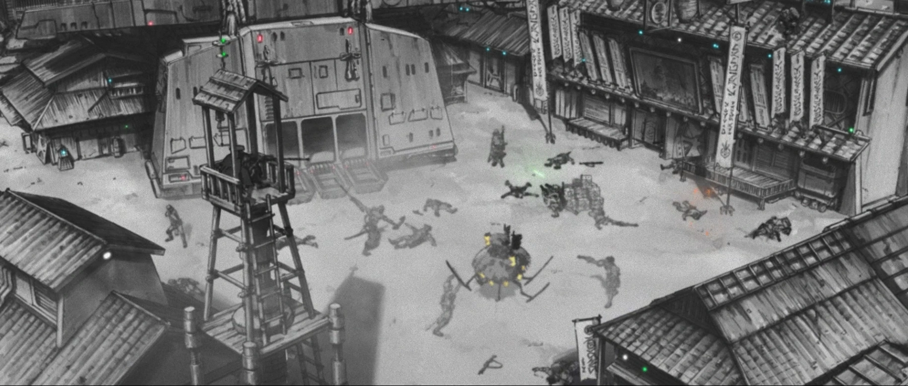 სოფლის მცველები უკვე იმარჯვებდნენ, როდესაც ბანდიტების მეთაური, მდედროებითი სქესის სითი კოურუ, გამოვიდა ქვეითთა გადამყვანი ტანკიდან, რომლითაც სხვებთან ერთად მოვიდა. კურუ, რომელიც თავს სითების ბნელ ლორდს უწოდებდა, მოკლა მეთაური,ტრანდოშანი მცველი შემდეგ კი შეეჯახა სხვა ჯილდოზე მონადირეებს. ბანდიტებმა ამასობაში სოფელს ცეცხლი გაუხსნეს და ნამსხვრევებმა დააზიანეს რონინის თანმხლები ასტრომექანიკოსი დროიდი R5-D56.[1]