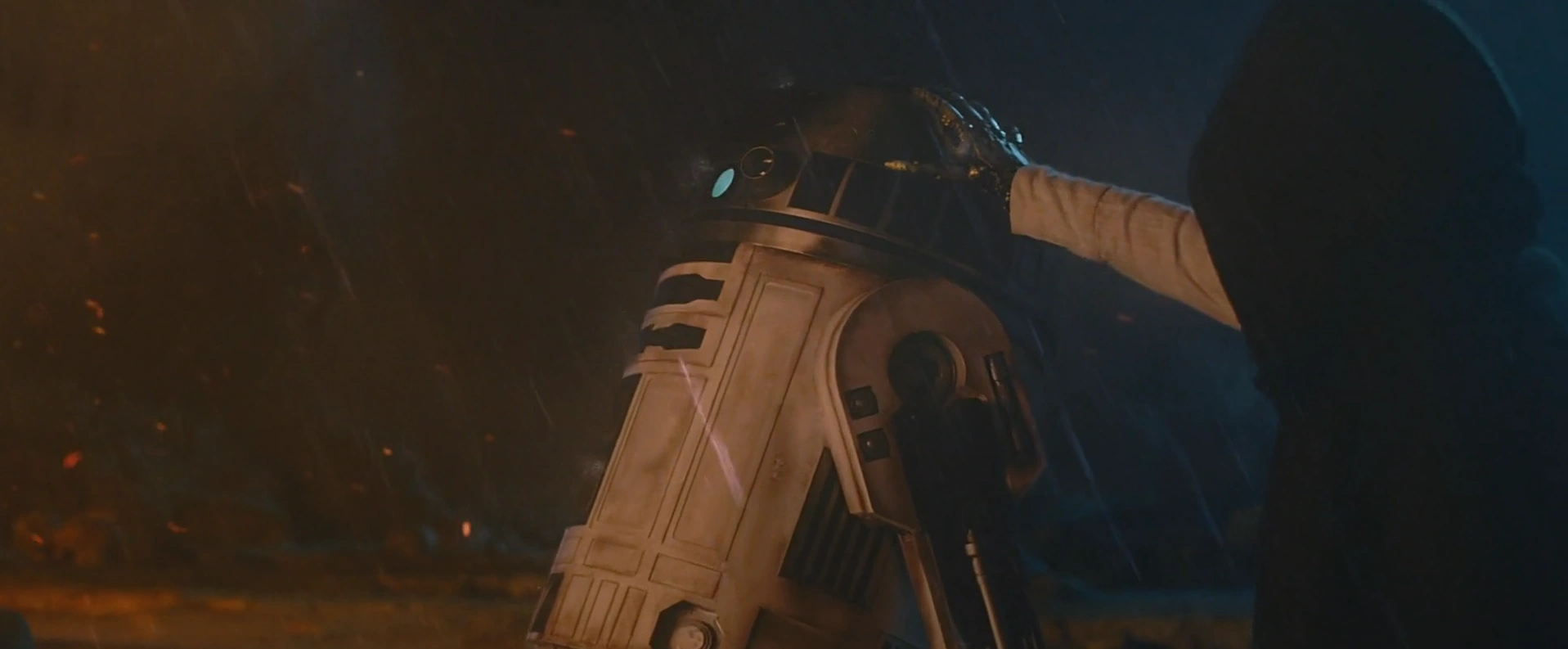 레이는 츄바카와 팔콘호를 타고 아크투의 작은 섬에 착륙해, 섬의 고대 유적지를 올라가다 마침내 고립되어 있던 오랜 제다이 마스터를 찾았다. 과거의 기억에 고통 받던 스카이워커는 아무 말도 하지 않았다. 레이가 은하계의 유일한 희망, 제다이의 귀환을 상징하는 아버지의 광선검을 건넬 때까지.