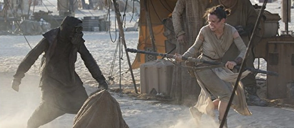 레이는 처음 쥐어본 광선검으로, 포스에 믿음을 걸면서 카일로 렌에게 대적했다.