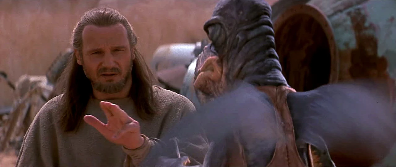 Qui-Gon probeert een Affect Mind uit te voeren bij Watto