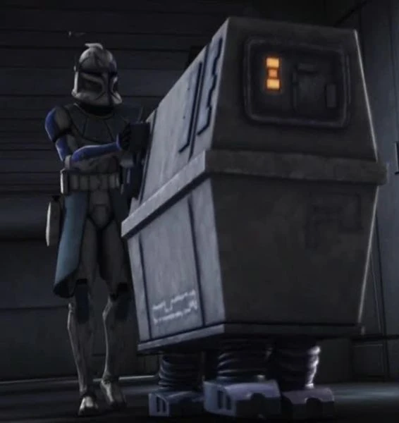 Rex en een PLNK Droid op de Rishi Moon
