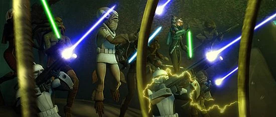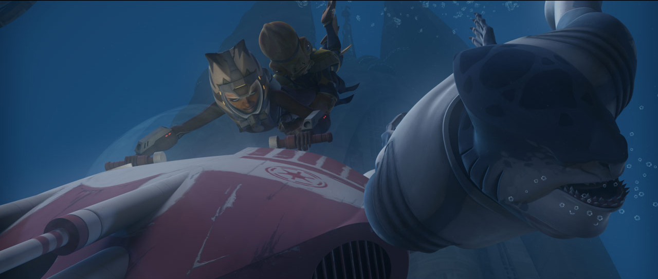 Ondertussen heeft de Jedi Order Kit Fisto, Ahsoka Tano en Clone SCUBA Troopers gestuurd als versterkingen. Met hun Subs beschikken ze over een zwaarder kaliber wapen. Riff Tamson blijkt een te duchten tegenstander te zijn onder water en leidt de Droids en de Quarren in de strijd. Op een bepaald moment verliest Anakin zijn helm om te kunnen ademen, maar Ahsoka grijpt net op tijd in en brengt de helm terug naar haar meester.