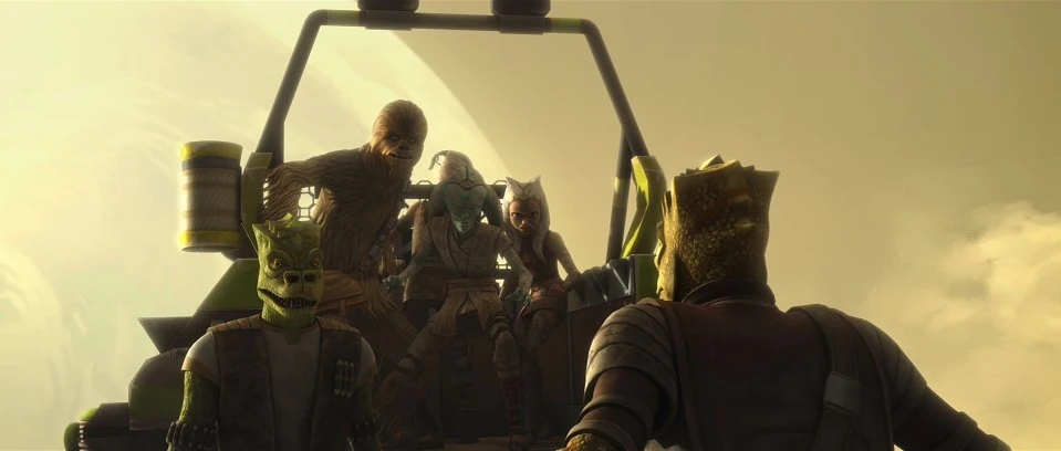 Met hun gevangene wil O-Mer zich een weg banen naar het Trandoshan Floating Fortress. Ahsoka wil graag nog wat wachten op respons van Chewbacca’s zender, maar deze lijkt niet te werken. Ze wil de Padawans niet in de steek laten en overhaalt Chewbacca om met hen mee te gaan.