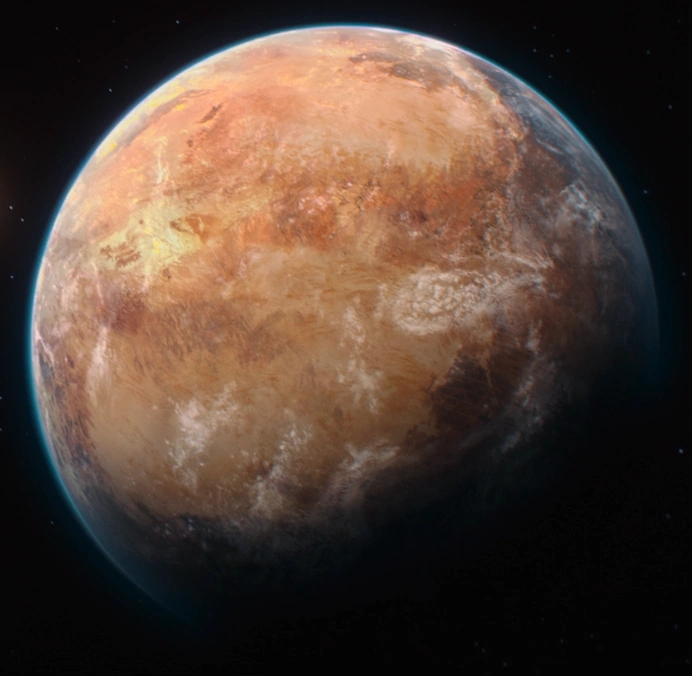 A superfície rochosa e árida de Arvala-7.