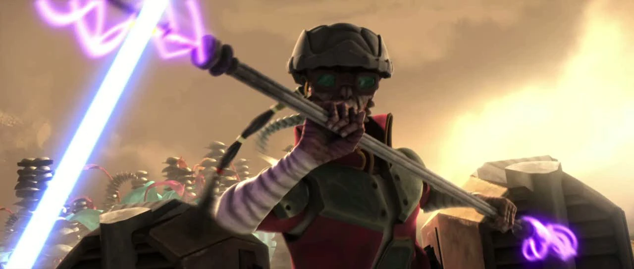 Ahsoka veio bem a tempo de salvá-lo. Seripas então revela que ele é realmente pequeno e usava seu terno era fazê-lo intimidador. Ahsoka tranquilizou ele. Logo um olheiro pirata espiona os agricultores enquanto eles estavam treinando. Sugi avista ele e ordena Embo ir cuidar dele. Ele atira no speeder do pirata, fazendo-o explodir. Então, ele o mata. Neste ponto Hondo decide atacar. Os caçadores de recompensas e os Jedi conseguem segurar o ataque. Hondo, em seguida vem com um tanque que mata Rumi e fere Embo. Anakin então ataca Hondo. Ele consegue jogar Hondo de um penhasco. Ele implora por misericórdia, quando Anakin o puxa para cima. Então ele grita que o esforço não é mais rentável, e se retira. Quando a batalha termina, Sugi oferece aos Jedi uma carona a um posto da República.