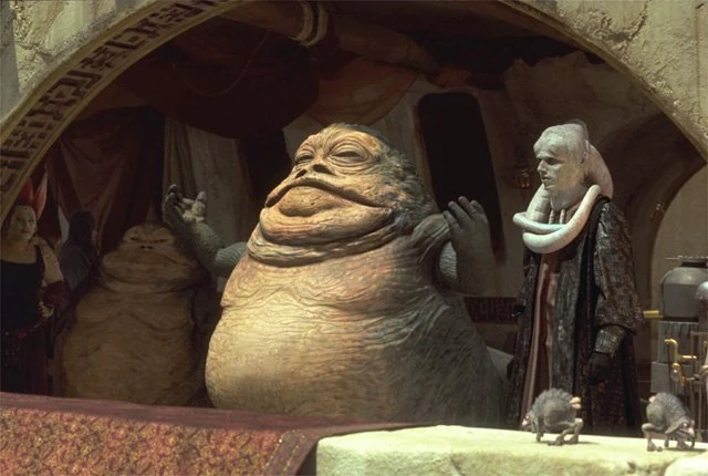 Depois que o contrabandista Han Solo não conseguiu reembolsá-lo por carga perdida, Jabba colocou um preço alto em sua cabeça. Solo foi finalmente entregue a ele por um de seus caçadores de recompensas, Boba Fett, como um presente de Darth Vader. No entanto, essa captura chamou a atenção para o Cavaleiro Jedi Luke Skywalker, que procurou resgatar seu amigo da prisão de Jabba. Enquanto tentava executar o Jedi e seus aliados no Grande Poço de Carkoon, Jabba foi morto por Leia Organa.