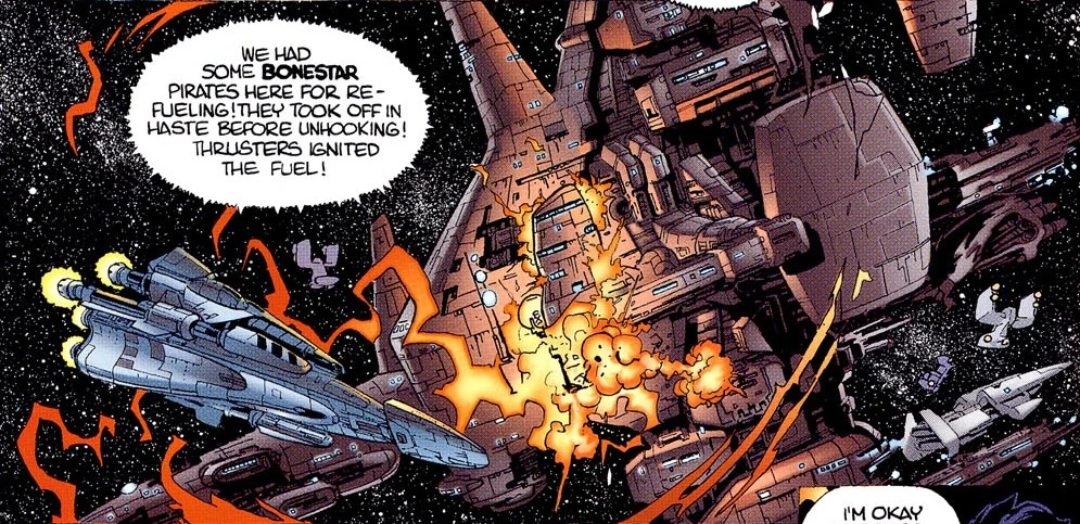 - A Estação do Mercado do Sistema-Interior de Gus Treta foi destruída pelo Pirata Bonestar Loka Hask em sua tentativa de escapar da captura pela Força de Segurança Corelliana.[5][6]