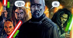 - "Você era um estimável Jedi, Quinlan Vos. Um vez. Como foi Sora Bulq. Como Conde Dookan. Agora todos vocês mancham os nomes dos Jedi. Eu também tinha minhas perguntas. Cada batalha que tenho com o Jedi caído como você responde a eles. Você trai tudo o que foi ensinado. Você trai a si mesmo. Você está sem fé..."