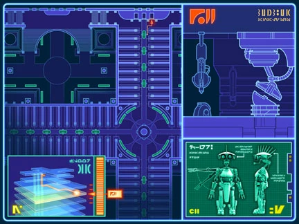 Um mapa dos Arquivos, detalhando os quatro salões principais, a grande área de trânsito embaixo e uma visão andar por andar, das áreas abaixo.