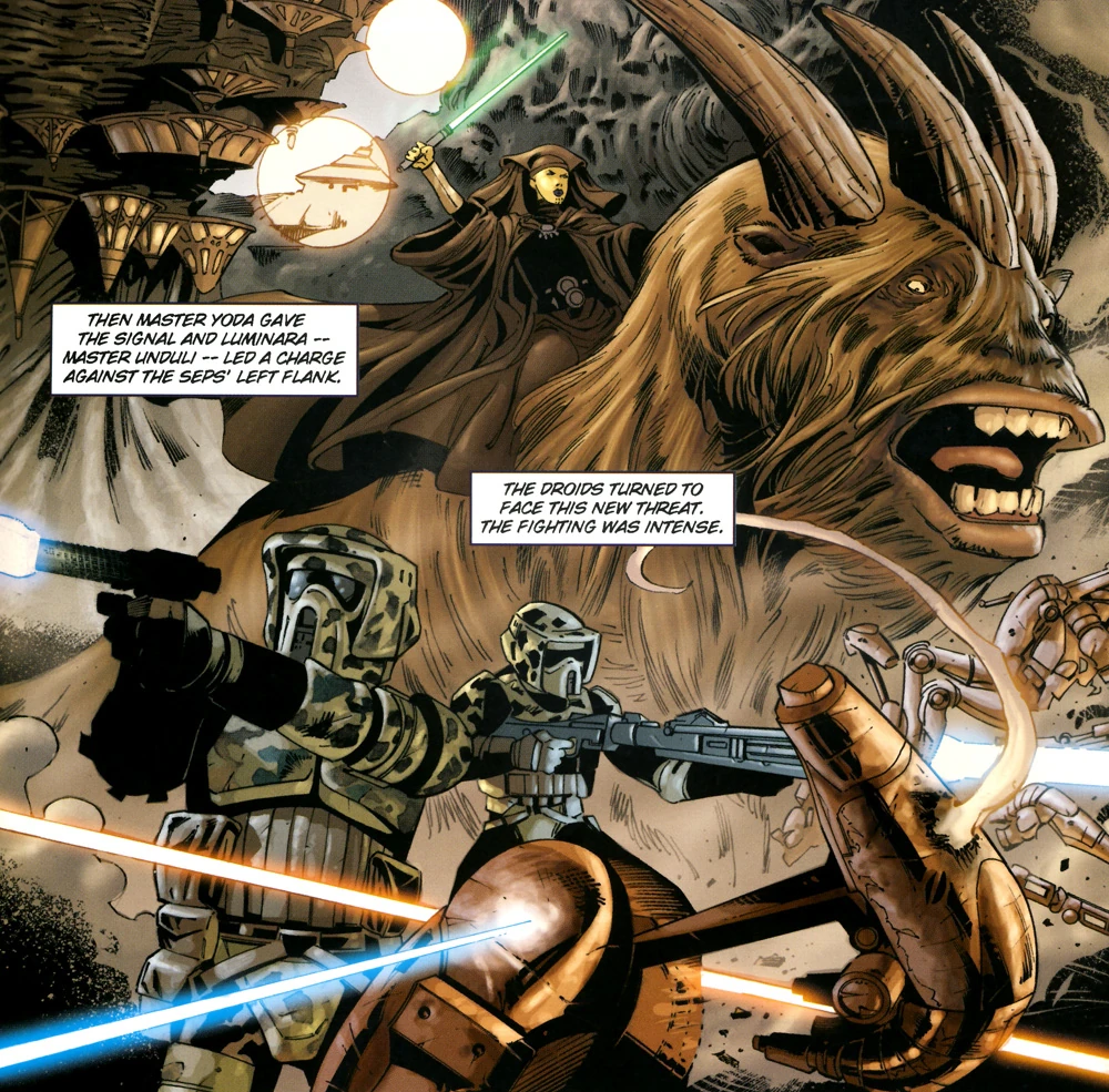 Um bantha de Kashyyyk montado por Luminara Unduli durante a Batalha de Kashyyyk.