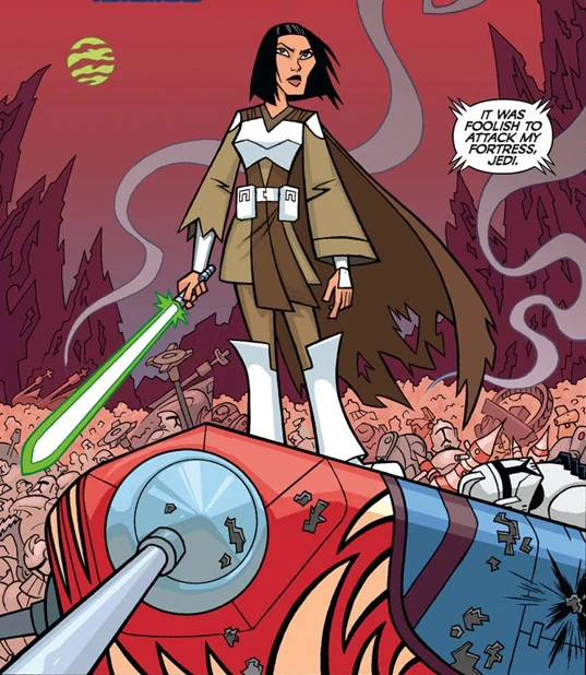 Ele zombou dela, dizendo que a sua própria população de Amaltanna, leal ao Galactic República, tinha atacado a sua fortaleza, como ele tinha enviado recursos para os separatistas. Mas o Amaltannians lutaram em vão, e seu ataque era desesperada, por causa da aparente interminável-ondas droides de batalha e, em seguida, o interior do castelo defesas.