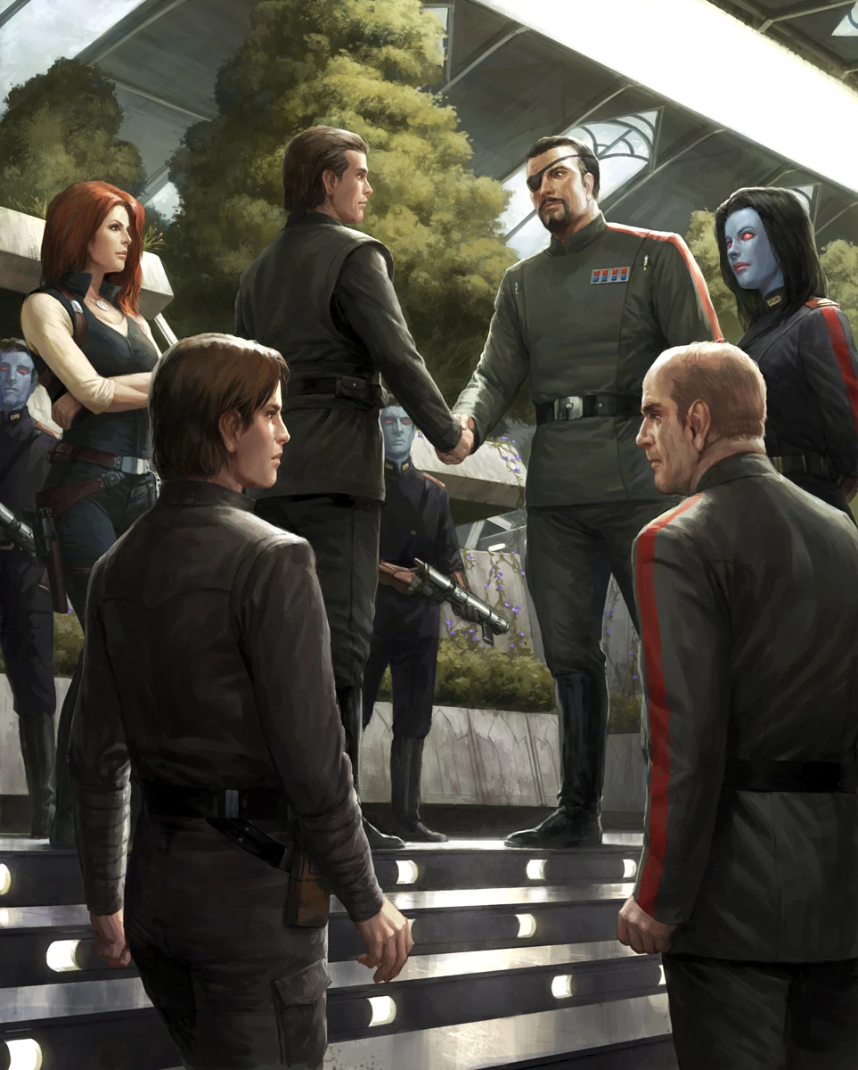 Seguindo essas primeiras vitórias e derrotas, a Aliança Galáctica e os Corellianos tentaram negociar um com o outro. Escolhendo a Estação Toryaz como local neutro para as conversas, o Supremo Comandante Pellaeon representou a Aliança e o Primeiro Ministro Saxan representou os Corellianos. Muitos membros de ambas as facções, incluindo Luke e Mara, também atenderem. Após o primeiro dia de conversas, havia esperanças de que uma trégua seria feita e a guerra terminaria antes que pudesse escalar. Contudo, Lumiya, a Sith que Luke acreditava estar morta, fez lavagem cerebral em vários commandos das forças de segurança da Estação Toryaz e os fez atacar vários membros de ambas as delegações, Luke entre eles. Enquanto ele e outros Jedi conseguiram se proteger de seus atacantes, o Primeiro Ministro Saxan esteve entre as vítimas.[148]