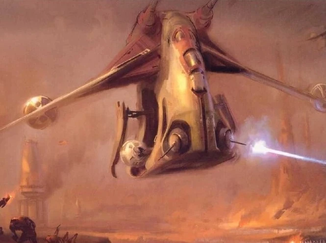 Uma nave LAAT/i durante as Guerras Clônicas.