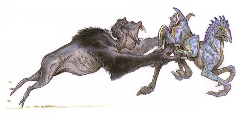 Um Veermok atacando um Jimvu.