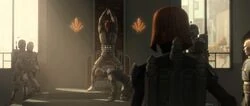 Bo-Katan e seus soldados no palácio de Jabba
