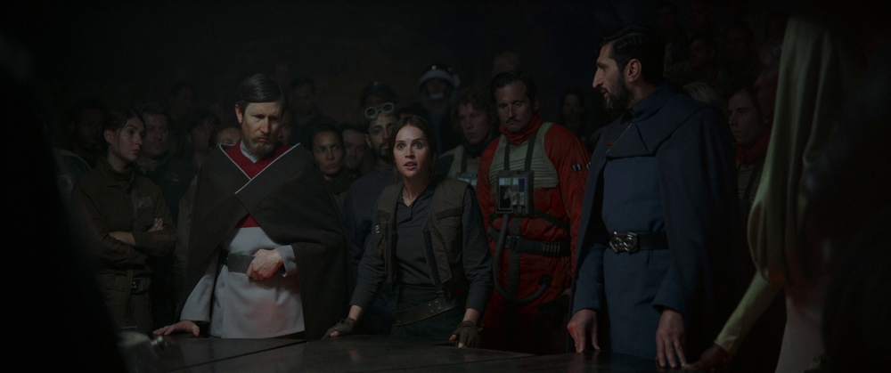 Tendo retornado à base rebelde em Yavin 4, Jyn e Bodhi estão presentes em uma reunião do Conselho da Aliança, onde Jyn propõe que os rebeldes viajem para Scarif e roubem os esquemas da Estrela da Morte para que saibam onde mirar o módulo do reator defeituoso. A liderança rebelde - incluindo Mon Mothma, Jan Dodonna, Bail Organa, Tynnra Pamlo, Nower Jebel, Vasp Vaspar, Davits Draven, Almirante Raddus e Antoc Merrick - não pode chegar a um consenso; muitos dos senadores propõem espalhar sua frota porque não têm escolha a não ser se render. Mothma, Organa e Raddus tentam defender o plano de Jyn. Infelizmente para eles, com Galen Erso e Saw Gerrera mortos e seu holograma destruído, a liderança rebelde não tem como verificar as afirmações de Jyn. A oposição temerosa de Pamlo, Vaspar e Jebel supera o apoio, apesar de um apelo apaixonado de Jyn, pedindo esperança. Sem o apoio total do conselho, Mothma é forçado a bancar o advogado do diabo, declarando que as chances são grandes demais para comprometer tanto de suas forças.