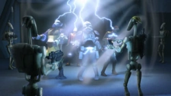 Mais tarde, Rex e sua equipe encontram-se presos dentro de um escudo de raios, uma tecnologia que os separatistas usaram para proteger seus dróoides de batalha. Erza então percebe que eles estão sendo cercados por dezenas de droides de batalha. Um comandante de dróides de batalha B1-268 diz que eles foram capturados pela Aliança Separatista e ordena que seus companheiros destruam os "invasores" da República. No entanto, B1-268 recebe novas ordens para atordoar e capturar os intrusos. Ezra então pergunta o que significa o sinal de chamada "Positivo". B1-268 ordena que seus homens levem os prisioneiros ao centro de comando. Desconhecido para os droides, Chopper estava espionando-os com sua câmera. B1-268 então observa que eles nunca capturaram ninguém antes. Os rebeldes foram então nocauteados por um raio de choque.