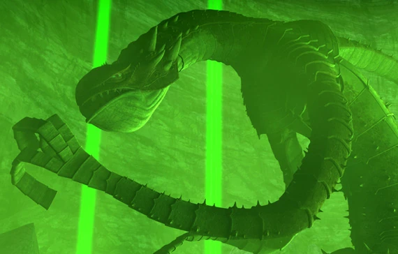 Anakin se surpreende, e é pego de surpresa quando o animal atinge sua nave e ele cai, ejetando-se a tempo. Ele ataca o monstro com seu sabre de luz, apenas para descobrir que sua armadura é praticamente impermeáveis até mesmo a sabres de luz. Ele pula no topo da cabeça do animal e percebe as lacunas na armadura que um tiro bem colocado pode penetrá-la antes de saltar em R2-D2 e subir rapidamente para fora do poço. Depois de fazer sua saída surpresa, Urus chega e explica que a criatura é uma fera Zillo; que foi a forma de vida dominante em Malastare diante do seu povo chegar, que atacavam os antigos Dugs. Urus afirma que, quando o seu povo começou a explorar combustível, as feras Zillo começaram a desaparecer. Acreditava-se que eles foram extintas ... até agora. Os dugs bombardeam a fera Zillo infrutiferamente, enquanto Anakin e Mace encontram Urus e um conselho Dug observando um manuscrito antigo mostrando as fraquezas da Fera Zillo.