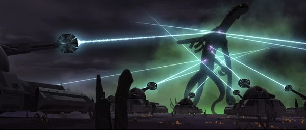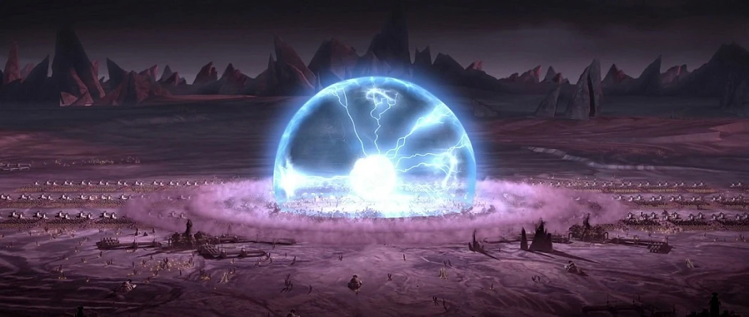 Eventualmente a República ordena a Bomba de Eletro-Prótons ser lançada sobre a maciça força separatista. O piloto solta a bomba, aniquilando as forças separatistas com uma explosão enorme, seguido de um pulso eletromagnético que corta a força da transmissão de Palpatine, os tanques dos clone, e os curto-circuitos da prótese no braço de Anakin. No entanto, a força de clones e os soldados Dug ficam ileso.